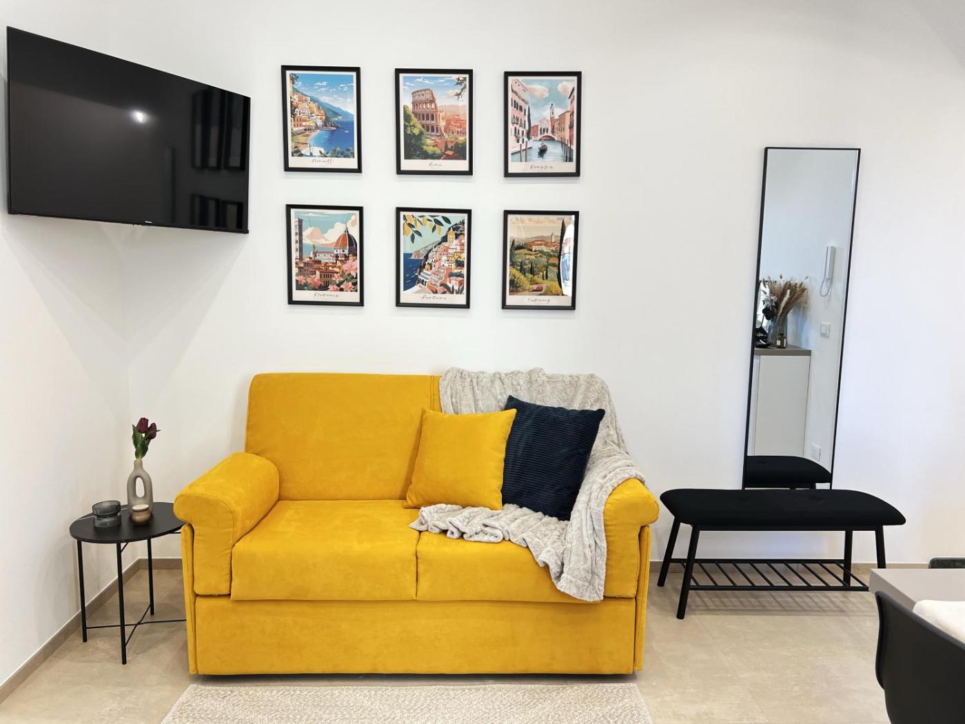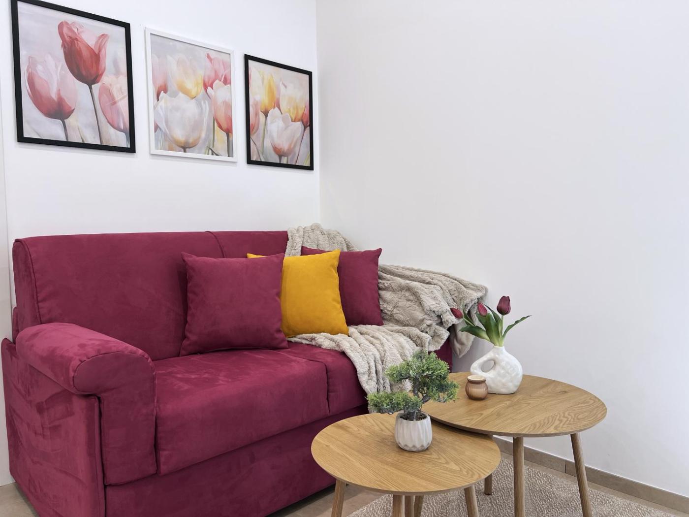 One-Bedroom Apartment. Boasting a private entrance, this air-conditioned apartment includes 1 living room, 1 separate bedroom and 1 bathroom with a shower. In the well-fitted kitchen, guests will find a stovetop, a refrigerator, kitchenware and an oven. This apartment has a washing machine, flat-screen TV with cable channels, city views, as well as chocolate for guests. The unit has 3 beds.